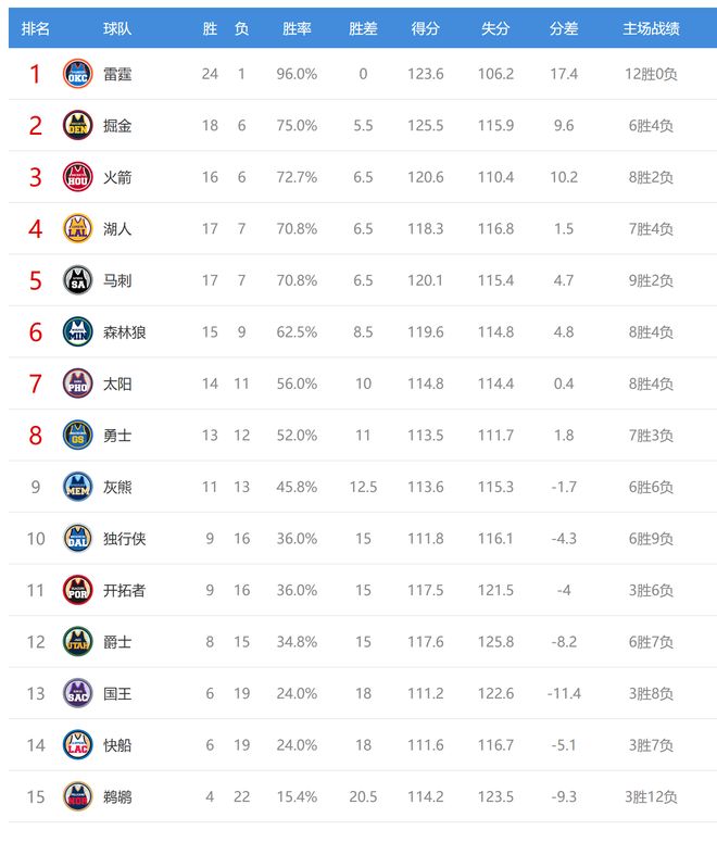 北京时间2025年12月12日,今日NBA有4场比赛,火箭、快船、掘金、开拓者、国王、鹈鹕参与其中,赛后西部排名发生了变化。