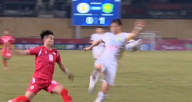 江文豪拉着球衣示意,球打在了自己的胸部。从慢镜头来看,江文豪并未手球。然而,主裁判坚持自己的判罚,江文豪愤怒挥手抗议。值得强调的是,亚冠二级联赛没有设置视频助理裁判,主裁判的判罚就是最终判罚。